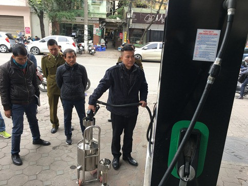 Sáng 11/1, đội Quản lý thị trường (QLTT) số 2, đội QLTT số 17, Chi cục QLTT Hà Nội đã tiến hành kiểm tra cây xăng tại số 9 Trần Hưng Đạo (Hoàn Kiếm, Hà Nội). Ảnh: Thanh Hà.