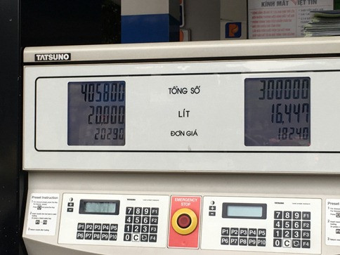 Số liệu mỗi lần đo 20 lít, số tiền hiện trên máy đo. Ảnh: Thanh Hà