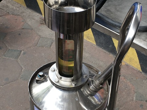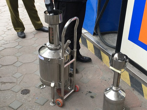 Anh Thắng đã phản ánh với quản lý cây xăng tuy nhiên, đại diện cây xăng cho rằng, bình xăng chiếc xe của anh có sai số do nhà sản xuất. Nhận được câu trả lời không thoả đáng của quản lý cây xăng, anh Thắng yêu cầu lấy bình tiêu chuẩn để đo thể tích. Kết quả là khi bơm 5l xăng từ cột bơm, số xăng trong bình đo lại không đủ dung lượng 5l, hao hụt khá nhiều. Giải thích lý do hao hụt, quản lý cây xăng cho rằng, chiếc bình đo bị chảy xăng, sau đó một mực mang bình xăng cất đi không cho quay phim, chụp ảnh. Ảnh: Thanh Hà