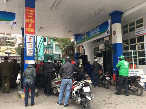 Sáng 11/1, ghi nhận tại cửa hàng xăng dầu số 4 trên đường Trần Hưng Đạo (Hà Nội) sau khi bị tố đổ sai 10 lít xăng vẫn đông nghịt người mua. Ảnh: Thanh Hà