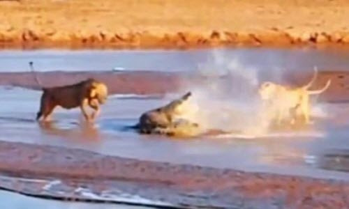 Tưởng chừng cuộc chiến giữa cá sấu và sư tử sẽ kết thúc nhẹ nhàng, nhưng cuộc chiến giữa chúng đã tiếp diễn sau đó với mức độ ác liệt hơn. Đàn sư tử lao vào tấn công cá sấu liên tiếp, khiến kẻ săn mồi dưới nước yếu dần.
