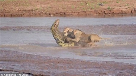 Nhưng cá sấu nhất quyết không chịu đi mà còn lao tới, dùng làm răng sắc nhọn tấn công sư tử. Vậy là cuộc chiến giành mồi kinh hoàng đã diễn ra.