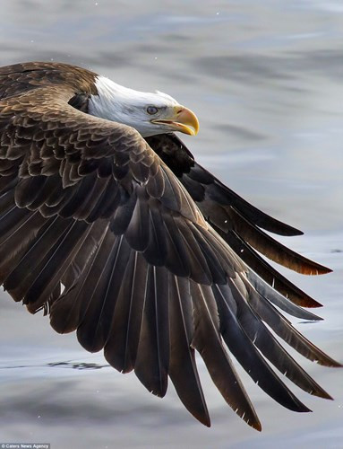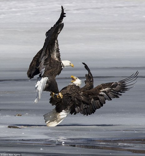 Nhiếp ảnh gia Brian MacKenzie ghi được cảnh tượng đại bàng quyết chiến tranh mồi trên sông Mississippi. Trước đó, một con đại bàng đói nhanh chóng lao xuống mặt nước đóng băng trên sông Mississippi khi phát hiện một con cá do con hải cẩu bỏ lại.