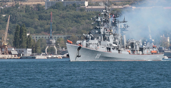 Nhóm tàu của Nga ở Syria đảm nhận nhiệm vụ bảo vệ tàu hàng cũng như phòng không. Trong ảnh: Tàu khu trục Smetlivy