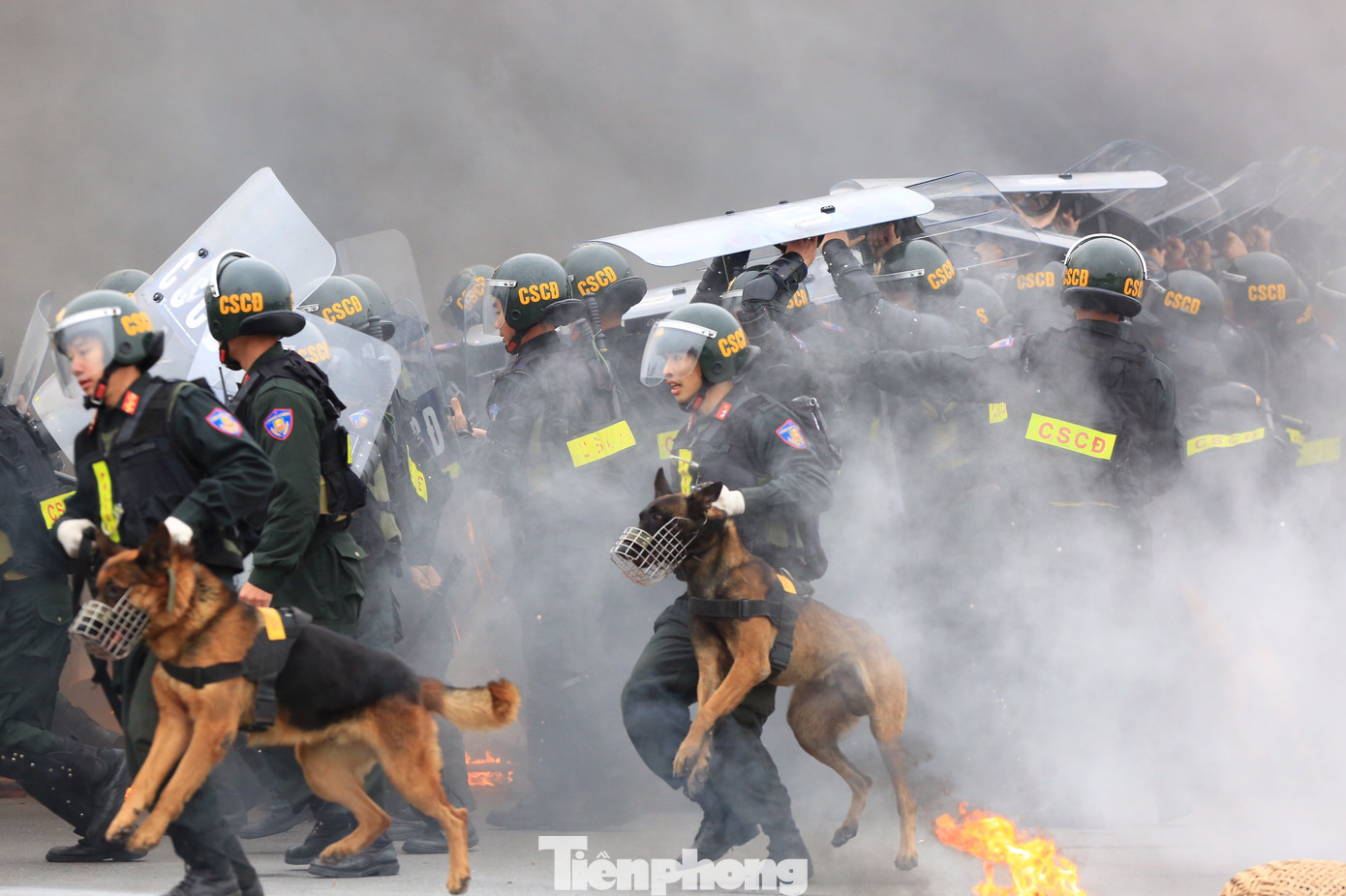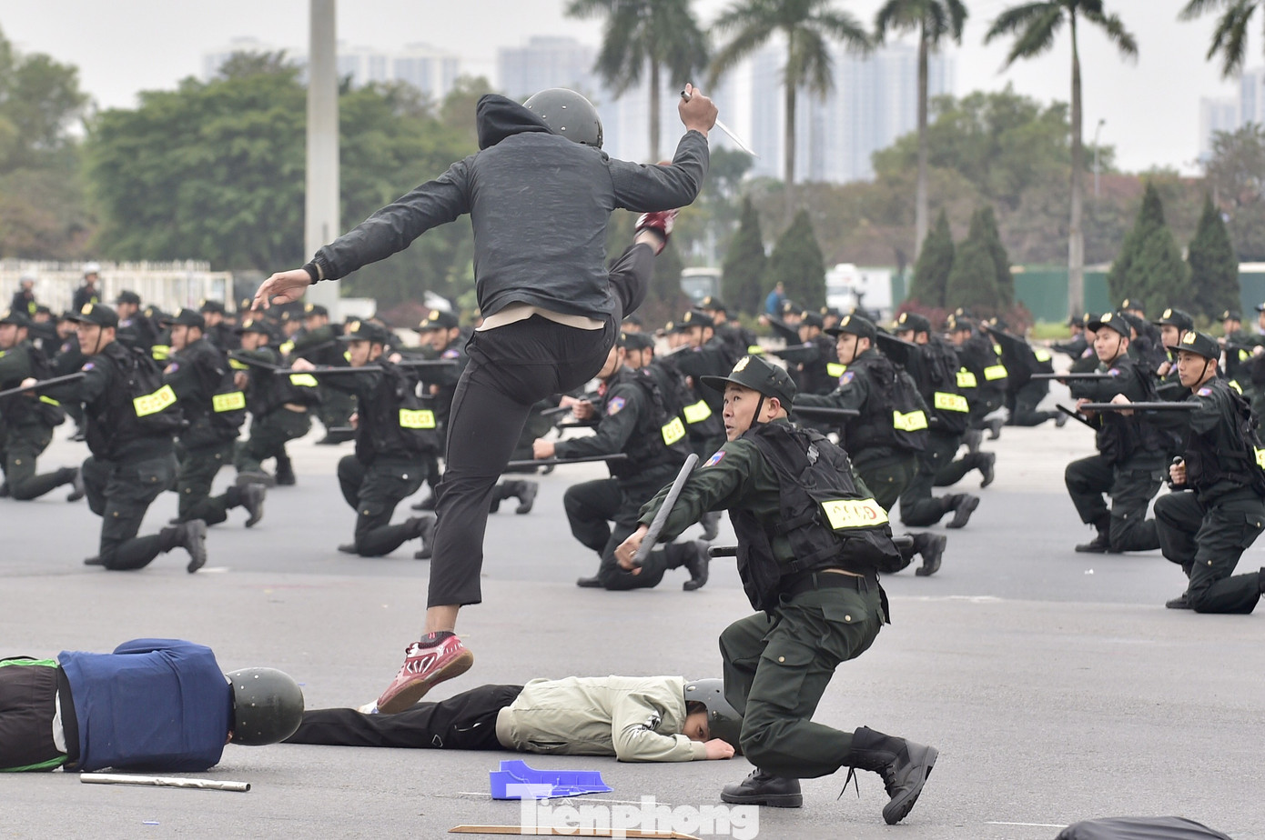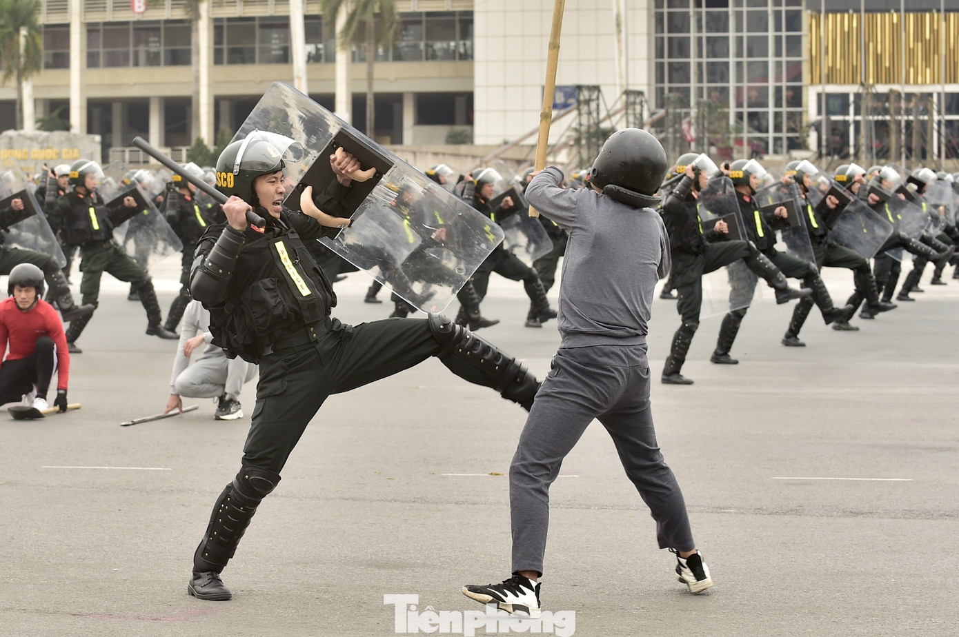 Các chiến sĩ biểu diễn võ thuật chống bạo động.