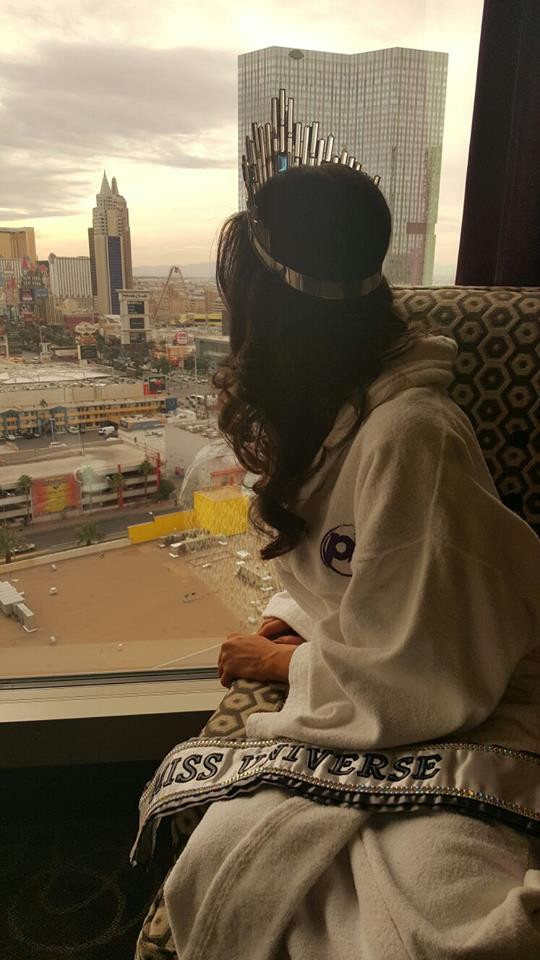 Người đẹp 26 tuổi cũng đăng tải thêm bức ảnh cô đang ngồi bên cửa sổ và ngắm nhìn ra bên ngoài trên trang cá nhân. Dưới bức ảnh này, tân hoa hậu hoàn vũ viết : “Hàng ngày, trước khi đăng quang, tôi thường ngồi đúng một chỗ và nhìn ra ngoài rồi băn khoăn không biết, cuộc sống sẽ như thế nào khi sống trong căn hộ đắt tiền của hoa hậu hoàn vũ. Tôi thực sự rất háo hức với chặng đường sắp tới”.