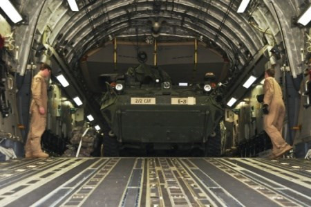 Đây là lần đầu tiên những xe thiết giáp Stryker được vận chuyển tới Bulgaria bằng đường hàng không.