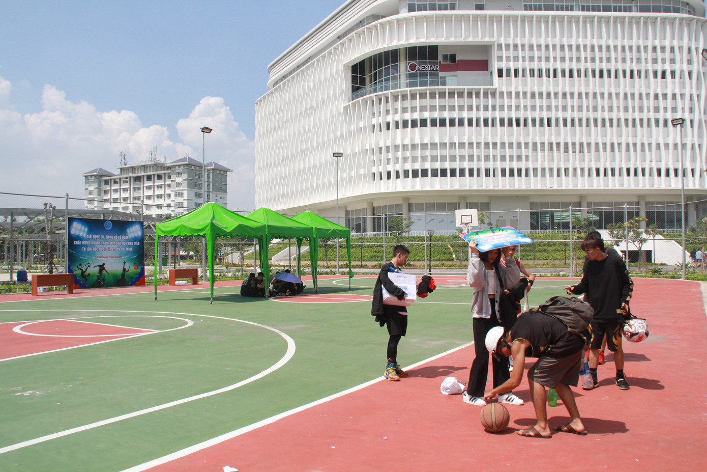Sân bóng đá, bóng rổ ngoài trời phục vụ hoạt động thi đấu, giao lưu thể dục thể thao của sinh viên
