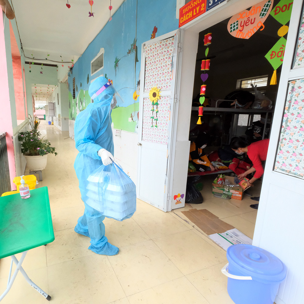 Quá trình chế biến, ngoài vệ sinh an toàn thực phẩm, người phục vụ phải tuân thủ yêu cầu về y tế nhằm tránh việc "lây ngược" virus vào khu cách ly.