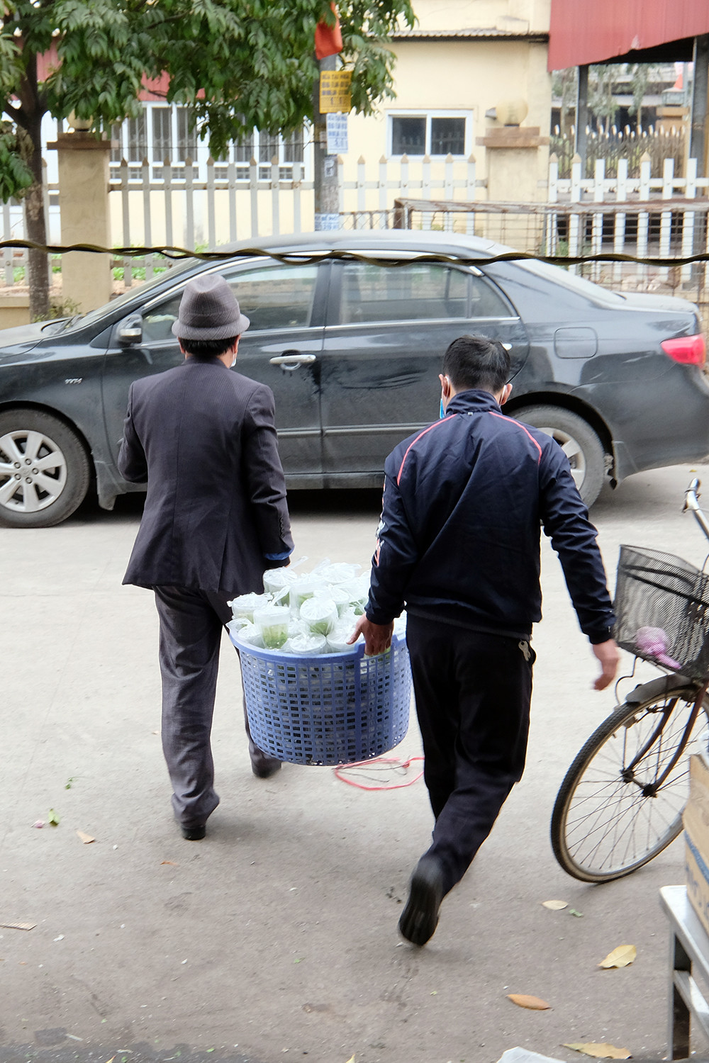 Chủ nhà hàng kiểm tra số lượng người cách ly trước khi vận chuyển suất ăn. Số lượng người phải cách ly tại thị xã Kinh Môn những ngày qua tăng lên nhanh chóng.