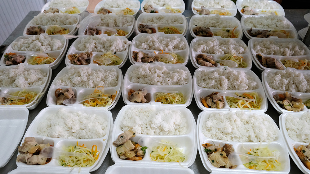 Đa phần suất ăn là cơm hộp nhưng với trẻ nhỏ tuổi, đơn vị hậu cần sẽ cung cấp cháo dinh dưỡng. Ngoài ra, mỳ tôm, sữa hộp... được đưa vào khu cách ly nhằm phục vụ đối tượng học sinh, trẻ em.