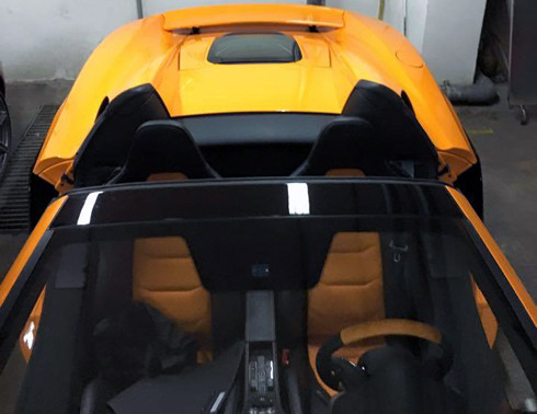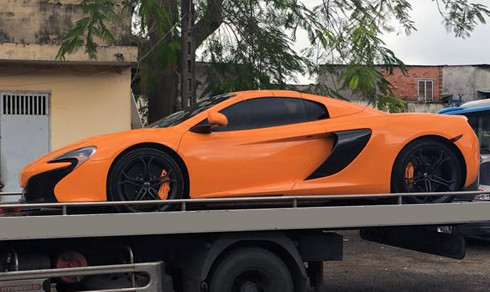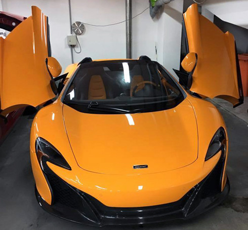 Siêu xe McLaren 650S Spider đầu tiên về Việt Nam có màu cam với nhiều chi tiết trên xe được làm từ vật liệu nhẹ sợi carbon. Thuộc sở hữu của một người chơi siêu xe nổi tiếng tại TP HCM.
