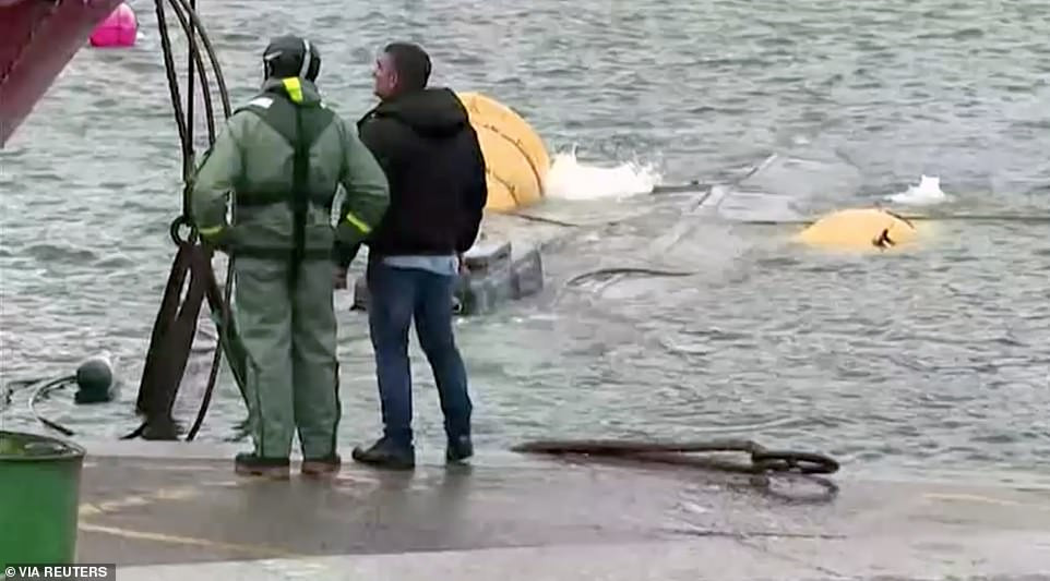 Bức ảnh cho thấy các thợ lặn Tây Ban Nha đứng trên tàu ngầm hôm thứ Ba, 26/11, trước khi dây cáp neo tàu đứt phựt do thời tiết xấu, khiến con tàu lại chìm xuống nước. Được biết, các đường dây buôn lậu thường sử dụng tàu ngầm để tuồn cocaine từ Mỹ Latinh vào Mỹ. Dù vậy, hình thức này vẫn còn khá mới mẻ ở châu Âu.