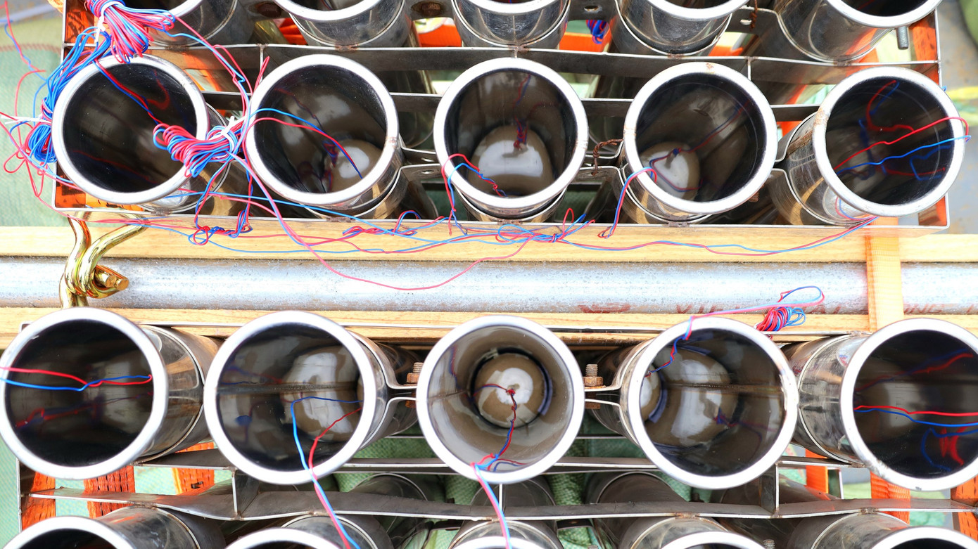 | 1.000 quả pháo hoa với nhiều chủng loại, màu sắc được tập kết vào vị trí. |