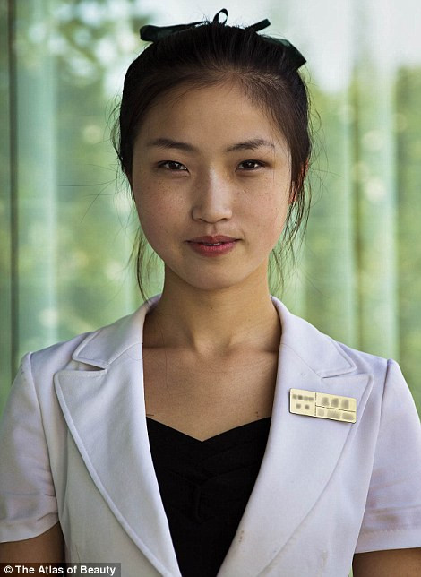 Nữ nhân viên có đôi mắt một mí đặc trưng cho phụ nữ Triều Tiên tại một khách sạn ở Sinuiju (gần biên giới Trung Quốc).