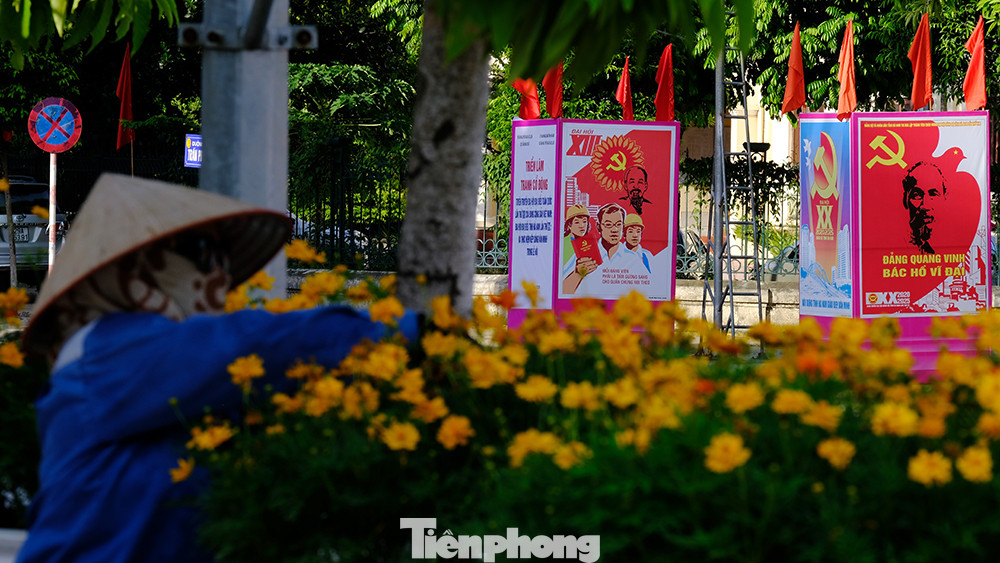 Các cụm cờ và pano tại đường Trần Phú, phường Quang Trung, thành phố Phủ Lý.