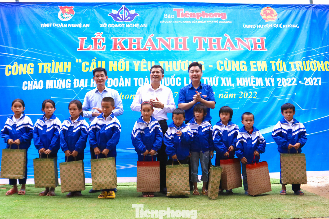Đây cũng là công trình ý nghĩa góp phần chào mừng Đại hội Đoàn toàn quốc lần thứ XII, nhiệm kỳ 2022 - 2027. Lãnh đạo ngành giáo dục Nghệ An gửi lời cảm ơn đến báo Tiền Phong, Tỉnh Đoàn Nghệ An đã phát huy tinh thần xung kích, sẵn sàng có mặt những nơi gian khó hỗ trợ bà con và học sinh trong nhiều lĩnh vực. Đồng thời mong muốn chương trình không chỉ dừng lại ở 3 cây cầu trong năm 2022 mà còn nối dài và có thêm nhiều cầu nối yêu thương khác đến những bản làng xa xôi trên địa bàn. Ngành sẽ tiếp tục vận động, kết nối thêm nhiều tấm lòng quan tâm, đồng hành cùng chương trình hỗ trợ bà con, học sinh vùng khó", GS,TS Thái Văn Thành chia sẻ.