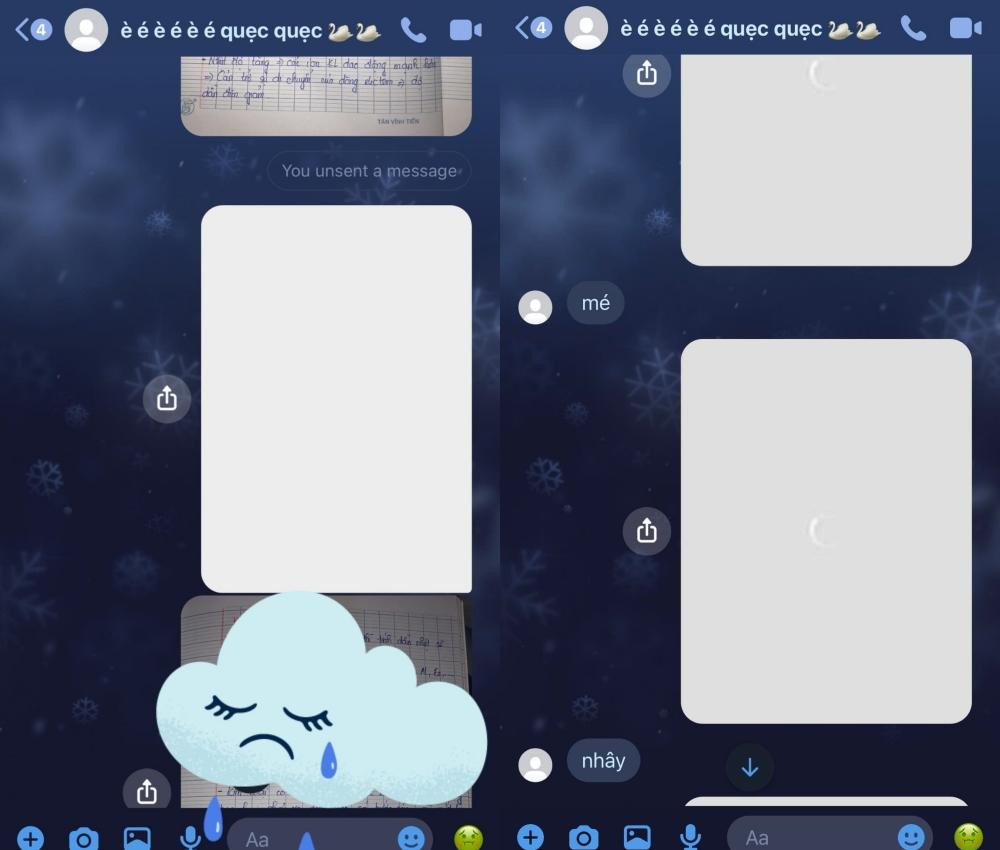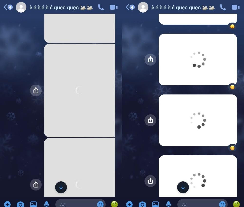Nữ sinh này đã nhận được loạt ảnh trắng có biểu tượng quay tròn ở giữa từ cô bạn thân. Nếu không để ý nhiều người sẽ nghĩ đây là do mạng kém, ảnh chưa kịp hiện lên nên mới như vậy. Nhưng thực ra đây chính là trò cô bạn thân kia nghĩ ra để "troll" bạn của mình.