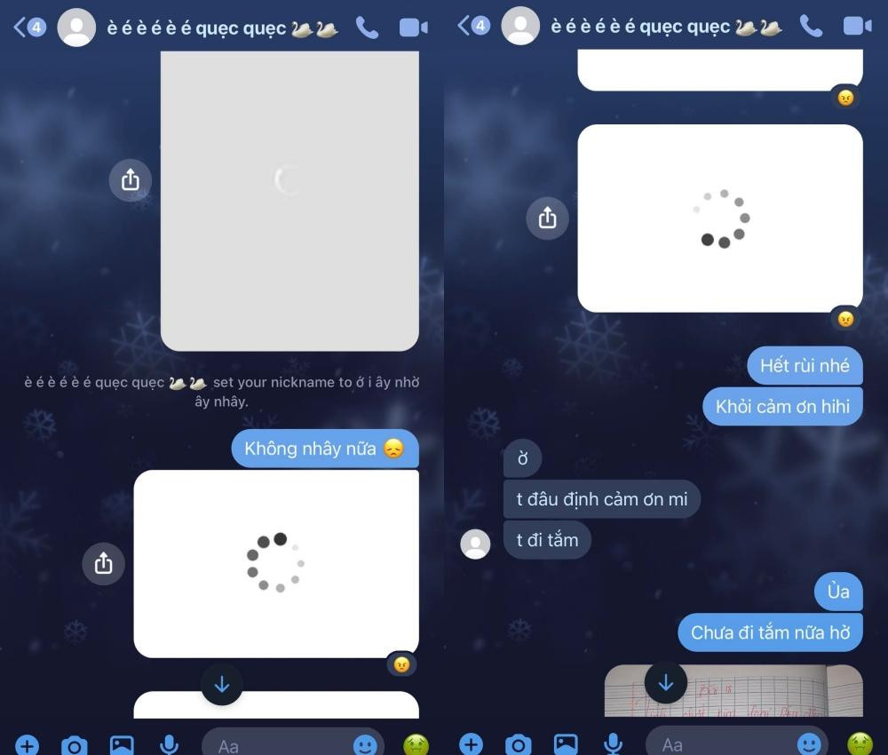 Khi phát hiện ra mình bị "troll", bạn nữ sinh này thậm chí còn đổi luôn biệt danh cho cô bạn thân là "ớ i ây nhờ ây nhây", thế nhưng cô bạn "nhây" này vẫn chưa dừng lại. Không để phí biệt danh đã được đặt, cô bạn tiếp tục gửi đến loạt ảnh "mất mạng" khác. Thậm chí còn nhấn mạnh "hết rồi nhé, khỏi cảm ơn hihi".