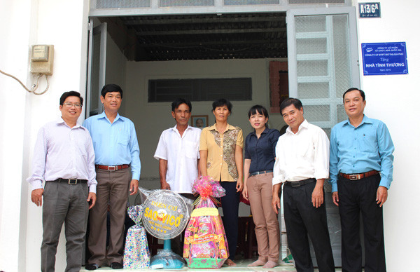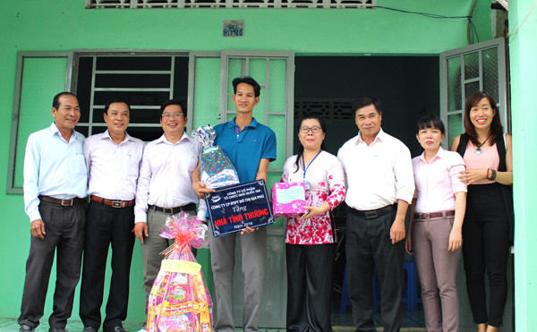 Đại diện Công ty N.H.O tặng quà Tết cho các hộ nghèo được nhận nhà tình nghĩa