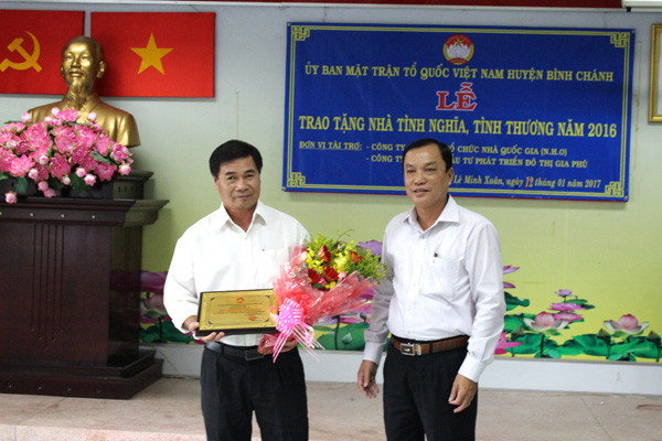 Công ty cổ phần Tổ chức Nhà Quốc Gia (N.H.O) vừa phối hợp với Ban Thường trực Ủy ban MTTQ Việt Nam – Ban vận động Vì người nghèo huyện Bình Chánh tổ chức lễ bàn giao 20 căn nhà tình nghĩa cho 20 hộ dân nghèo của xã Đa Phước, xã Quy Đức, xã Lê Minh Xuân, xã Vĩnh Lộc B, xã Phạm Văn Hai, xã Bình Lợi với tổng giá trị tài trợ từ Công ty N.H.O lên tới 1,2 tỷ đồng.