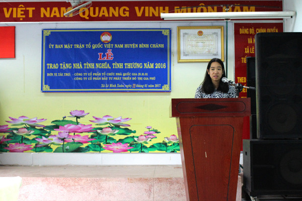 “Hai mươi căn nhà tình nghĩa được trao tặng để người dân kịp đón chào năm mới trong ngôi nhà mới là một sự nỗ lực rất lớn của N.H.O cùng toàn thể cán bộ Uỷ Ban Mặt Trận Tổ Quốc Huyện Bình Chánh, cán bộ các cấp xã đã rất nhiệt tình cùng chung tay thực hiện. Chúng tôi hy vọng với những sự sẻ chia, đóng góp này sẽ mang đến cho cư dân huyện Bình Chánh những niềm vui nho nhỏ, những sẻ chia thiết thực để vơi đi chút khó khăn trong cuộc sống, cùng đón chào một mùa xuân mới an bình và tràn đầy hi vọng”, bà Hòa nhấn mạnh.