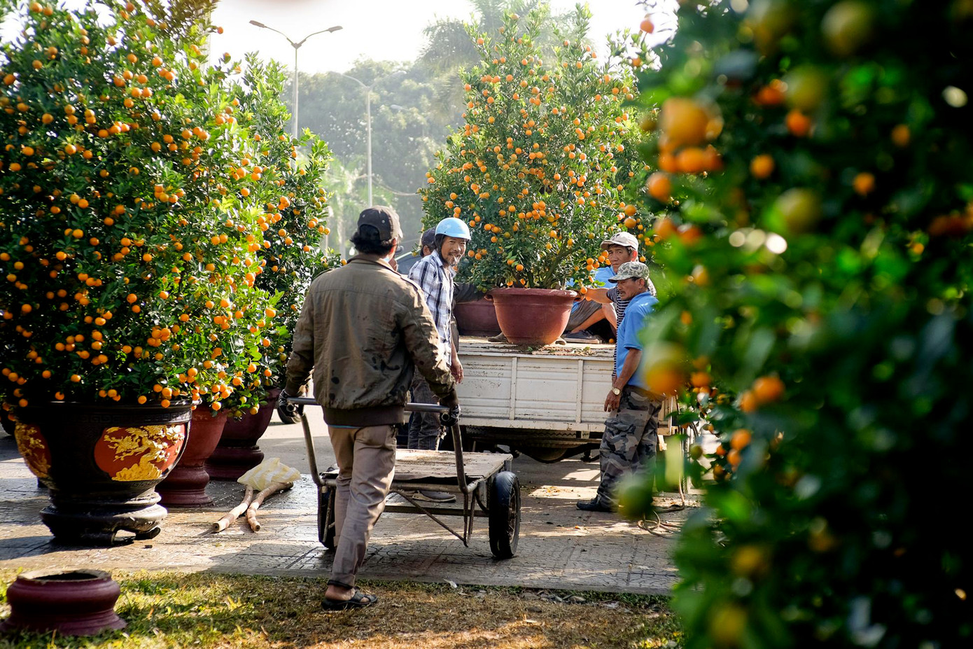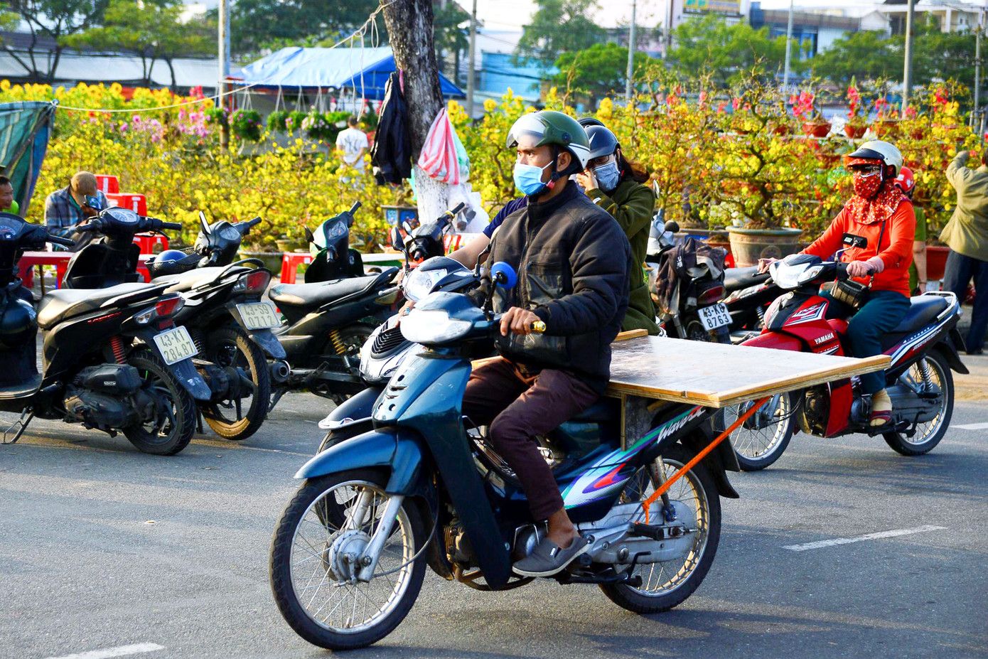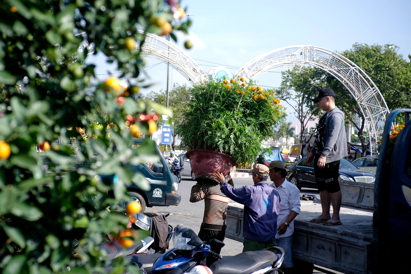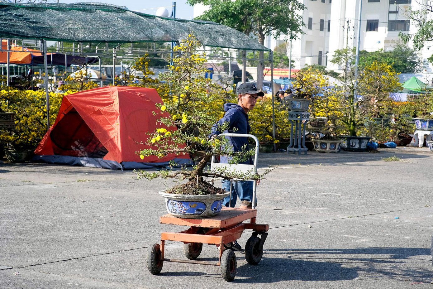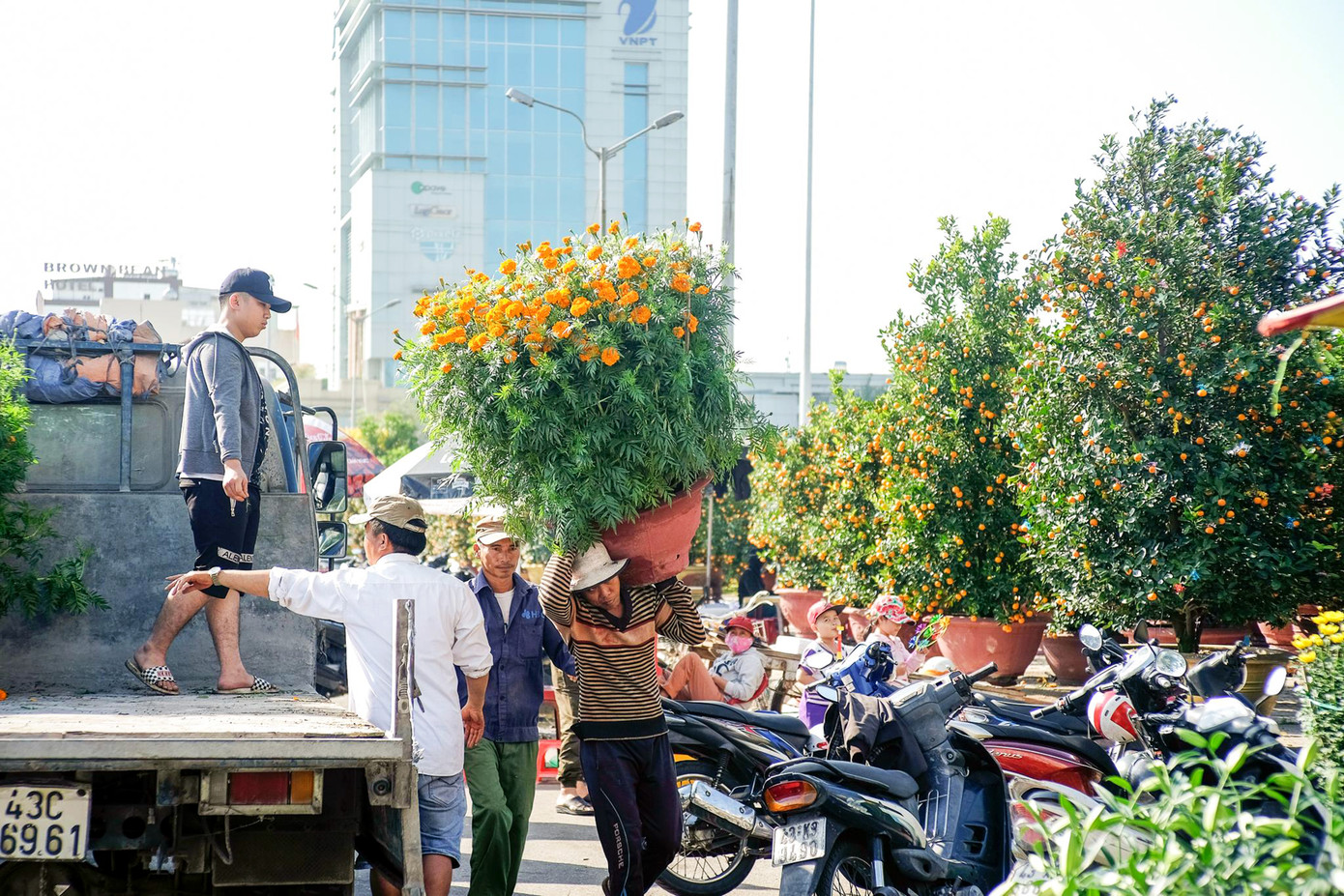 Có thâm niên gần 15 năm chở hoa Tết, ông Huỳnh Ngọc Tuấn (quận Hải Châu, Đà Nẵng) là một trong những nhân công quen mặt ở chợ hoa. “Tết nhu cầu chơi hoa, cây kiểng đông nên anh em tui có việc làm, kiếm dăm ba đồng phụ Tết cho má mấy đứa. Nghề ni ngó thì dễ, nhưng bạc. Chở hoa thuận lợi thì không sao chứ gặp tai nạn, đổ cây thì coi như mất Tết vì chậu mô cũng bạc triệu”, ông Tuấn kể.
