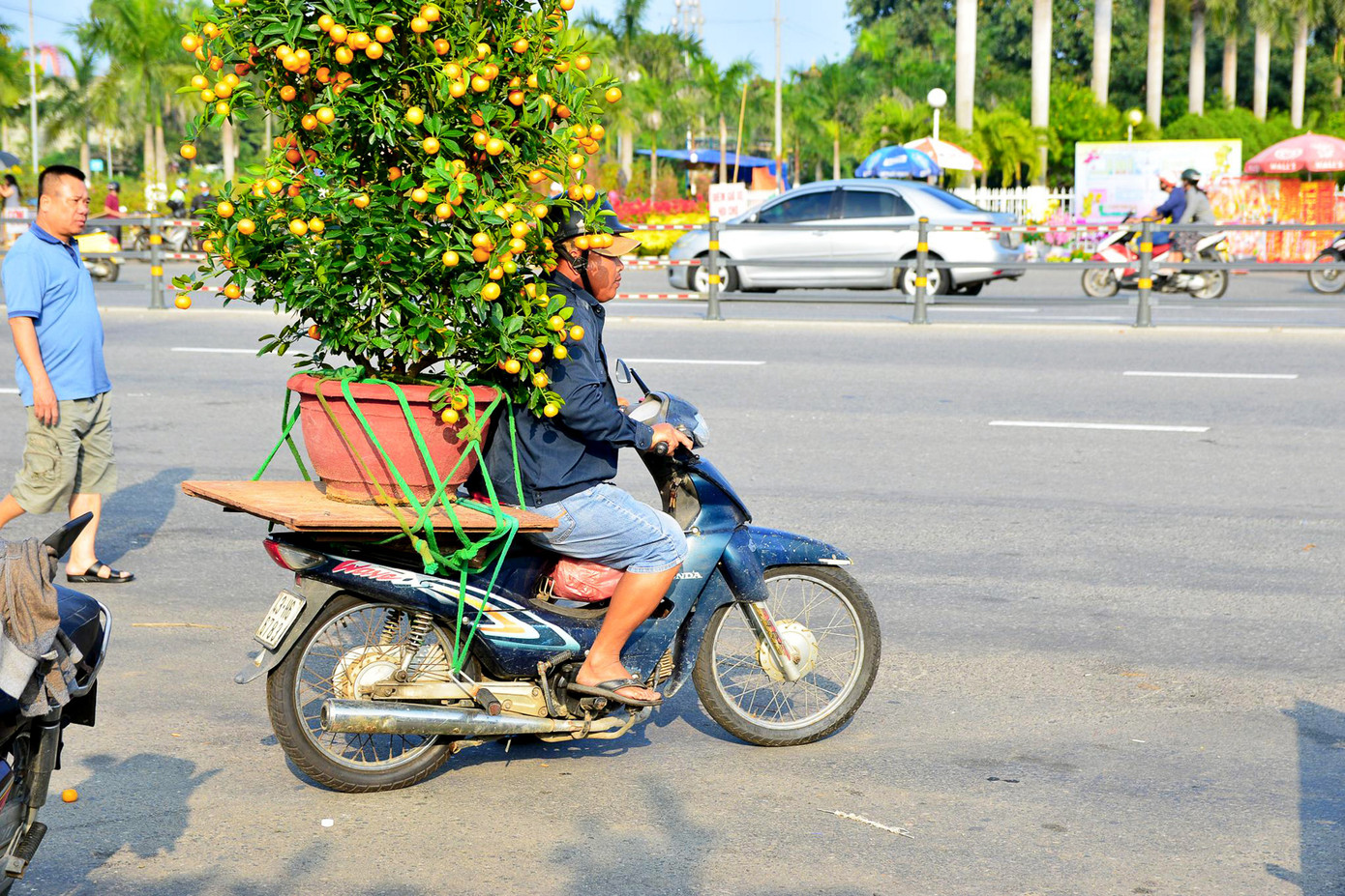 Làm nghề này đa số là cánh mày râu, “sức dài vai rộng” bởi chở những chậu mai, chậu quất hay đào tiền triệu đi những quãng đường ngắn thì đôi ba cây số, dài thì mười mấy, hai mươi cây số không phải việc dễ dàng.