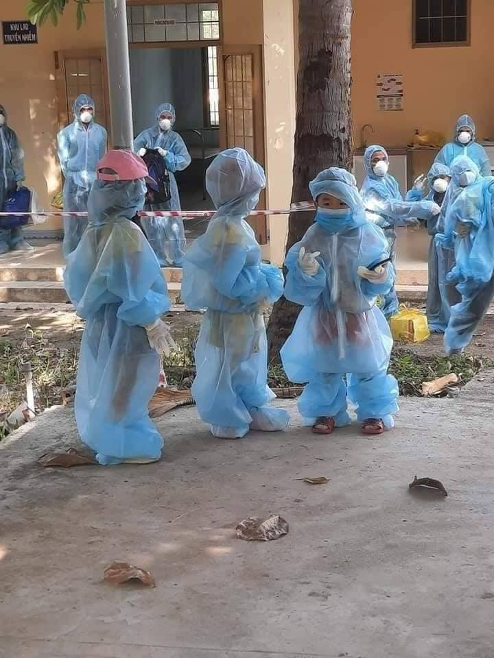 Mới đây, trên mạng xã hội xuất hiện những hình ảnh của các em nhỏ mặc đồ bảo hộ rộng thùng thình trong khu cách ly tại Bệnh viện Sơn Hòa, Phú Yên. Được biết, những em nhỏ này chỉ tầm 3 - 5 tuổi, dù phải xa gia đình đi cách ly nhưng vẫn rất lạc quan, nghe lời các nhân viên y tế.