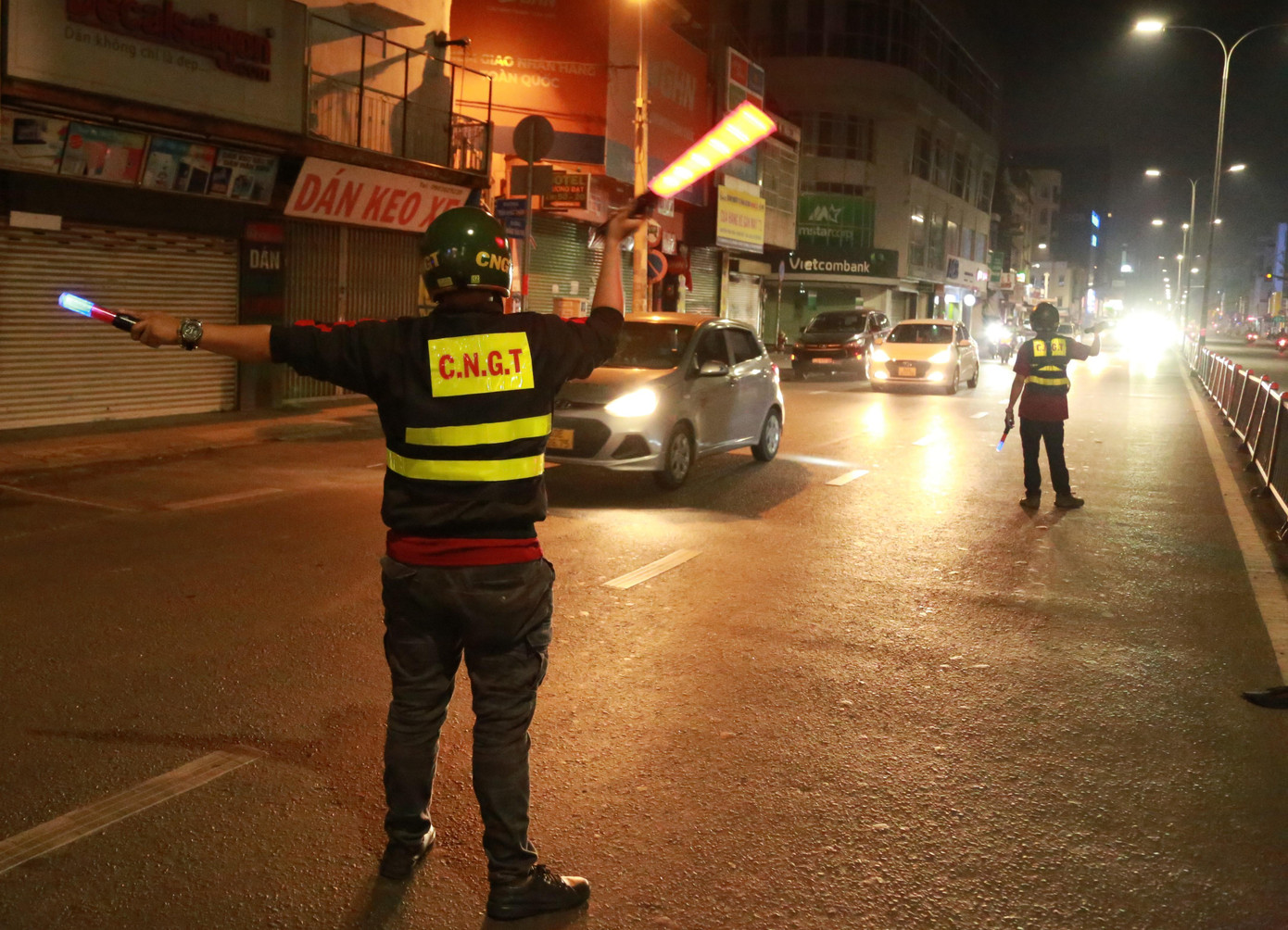 | Trên đường quay về, khi thấy có một vụ va chạm giữa hai xe ô tô trên đường Hoàng Văn Thụ (quận Tân Bình), các bạn dừng xe tham gia hỗ trợ đội Cảnh sát giao thông làm nhiệm vụ. |