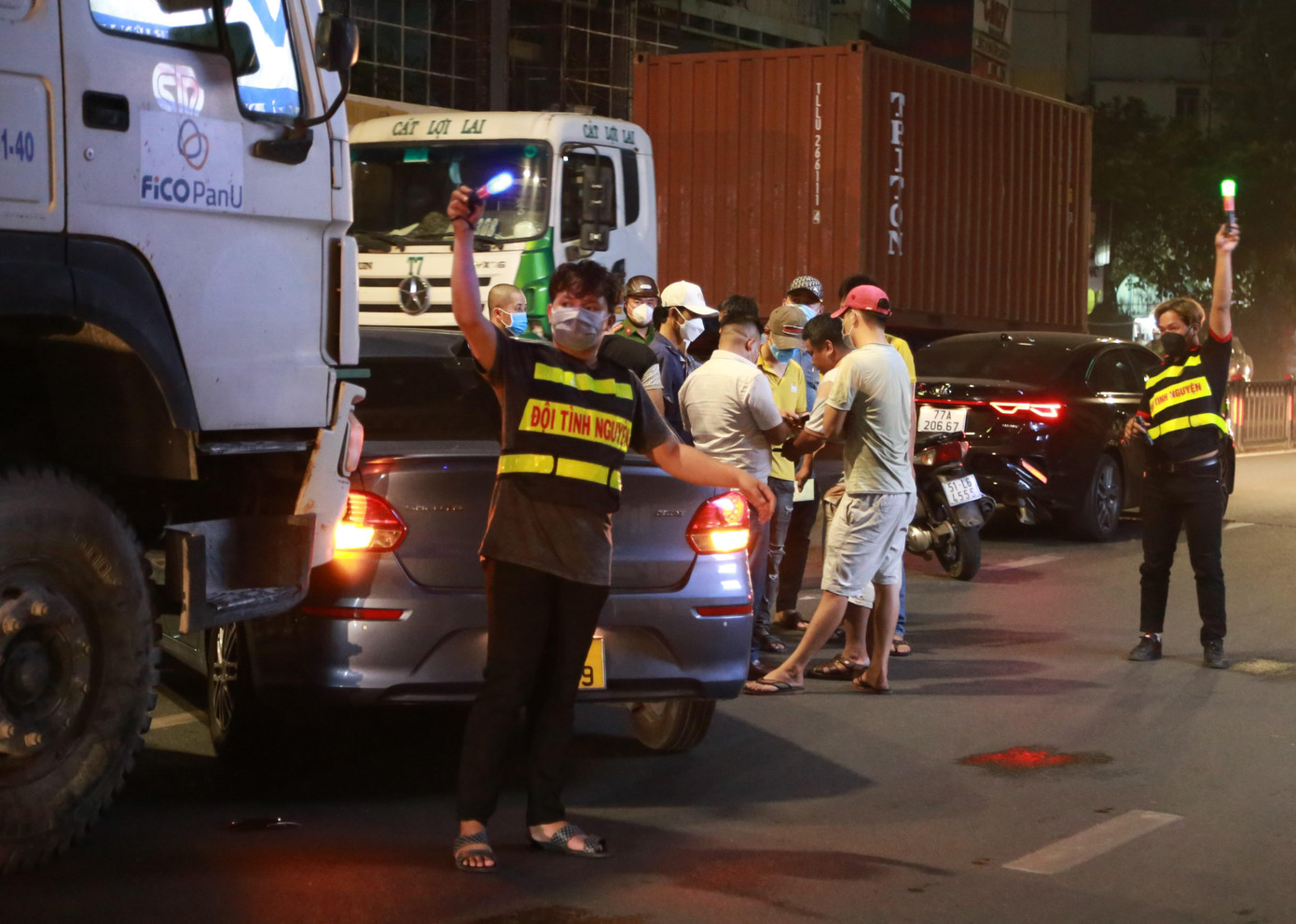 | Hằng đêm, các thành viên tập trung tại địa điểm cố định trên đường Phạm Văn Đồng (phường 3, quận Gò Vấp) và cùng nhau rảo qua nhiều con đường để hỗ trợ người dân - Ảnh: Ngô Tùng |