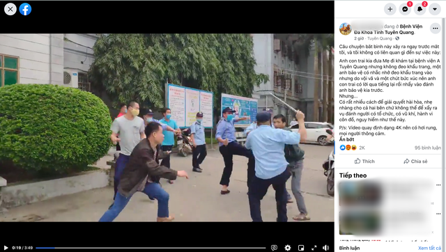 Trước đó, trên mạng xã hội Facebook lan truyền đoạn clip ghi lại cảnh xô xát giữa một người đàn ông và nhiều nhân viên bảo vệ, tại Bệnh viện Đa khoa tỉnh Tuyên Quang.
