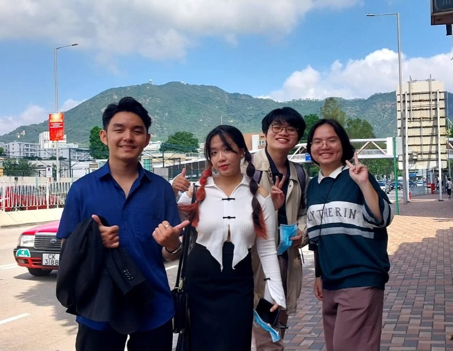 | Nhóm chụp tại Đại học Hong Kong Baptist cùng các đội thi khác và giám khảo. |