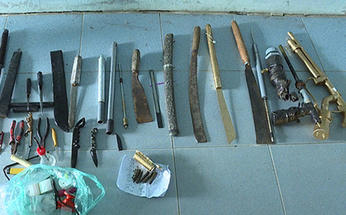 Ngoài ra, trong căn nhà chứa nhiều "hàng nóng" như: dao bấm, cây xom gạo, mã tấu, ống tuýp, súng bắng hơi cồn, dụng cụ sử dụng ma túy... Kết quả kiểm tra, cả 3 thanh niên đều dương tính với ma túy và có nhiều tiền án, tiền sự.