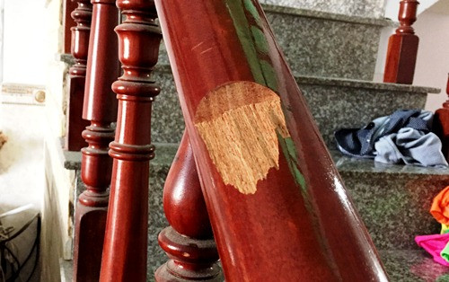 Lúc sau, Tú lại đến cùng với năm thanh niên cầm mã tấu, kiếm xông vào nhà đuổi chém trúng chân anh Huần."May nhát chém trúng cầu thang trước nên chân tôi nên chỉ bị bầm. Tôi chạy lên lầu thì nhóm này ở đưới đập phá đồ đạc", anh Huần nhớ lại.