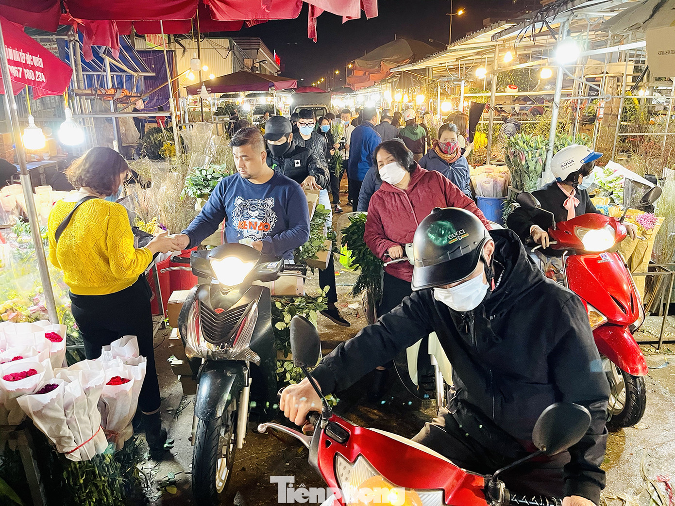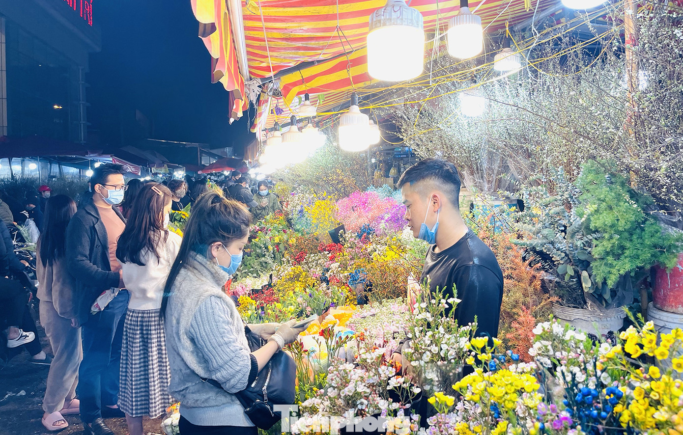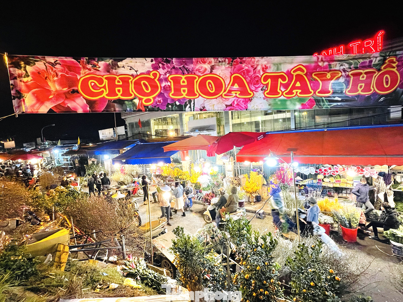 Rạng sáng 30 Tết, chợ hoa Tây Hồ vẫn nhộn nhịp người bán kẻ mua.