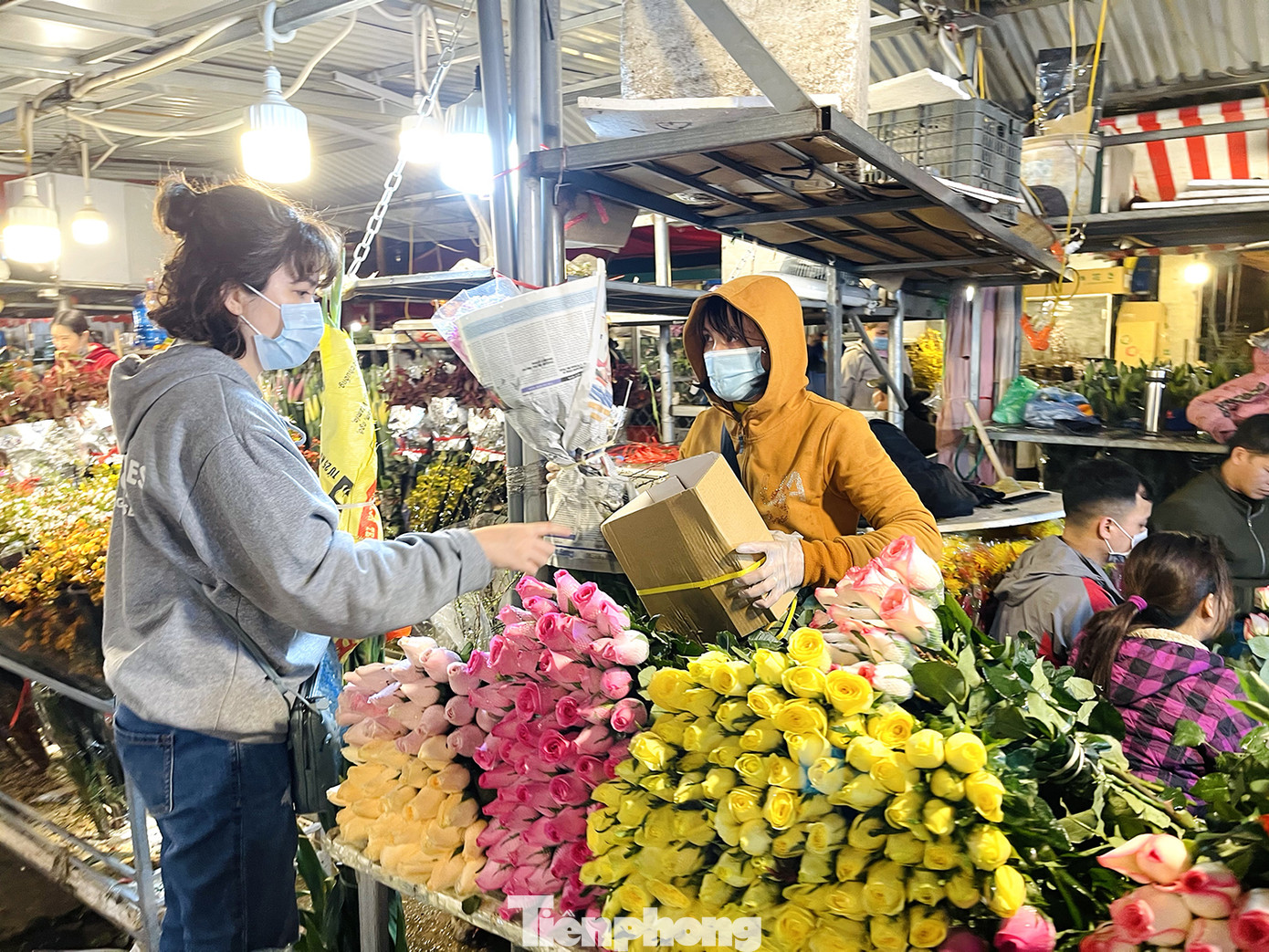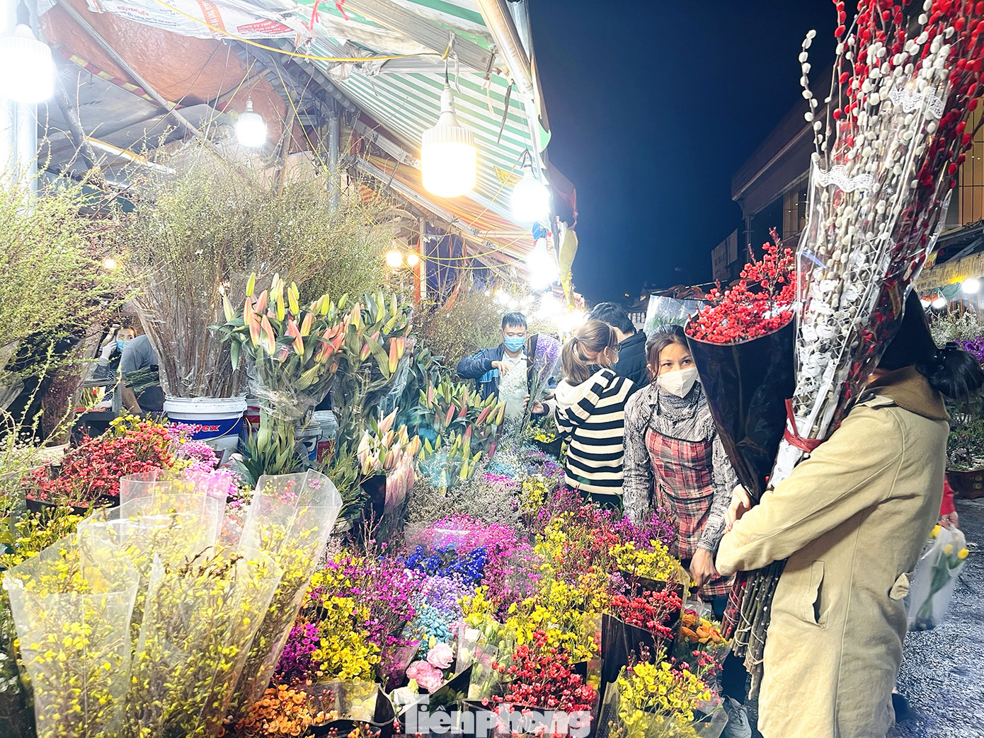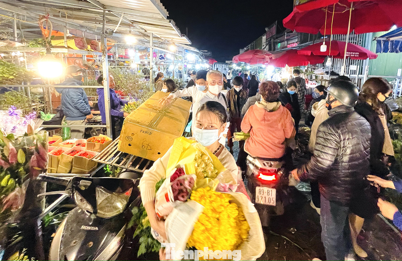 Rạng sáng 30 Tết, chợ hoa Tây Hồ vẫn nhộn nhịp người bán kẻ mua.