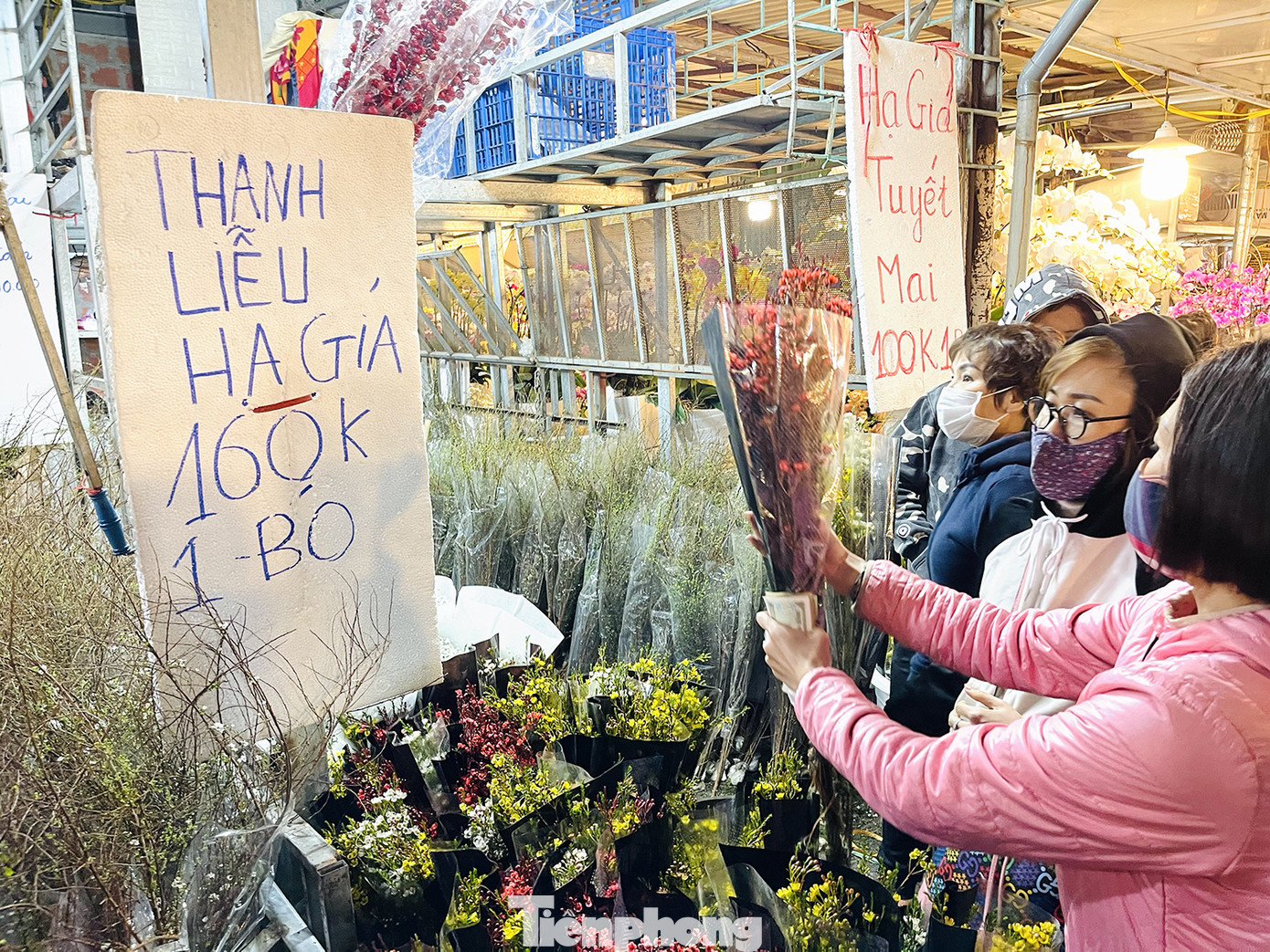 Một số cửa hàng treo biển giảm giá Thạnh Liễu còn 160.000/bó, Tuyết mai còn 100.000/bó thu hút được khá dodong người mua.