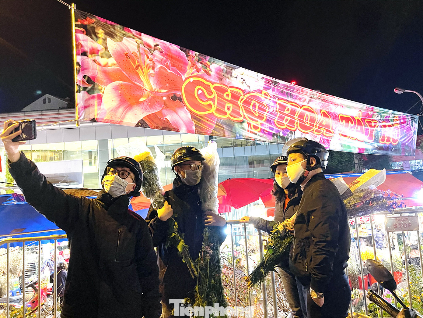 Người dân không chỉ đến mua hoa mà còn tranh thủ chụp hình để lưu lại không khí tết đến xuân về đang rất cận kề.