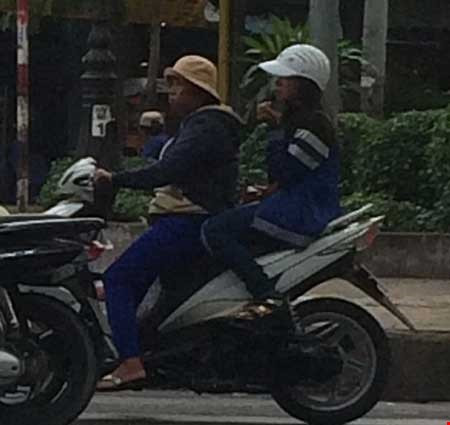 Sau một hồi chạy lòng vòng nhưng chưa có mối, hai cô gái dừng trước quán nước thì thanh niên xăm mình cũng đỗ xịch bên cạnh. Thấy tôi chụp ảnh, bà chủ quán nước vội vàng la nhỏ: “Đừng, tụi nó đánh chết. Hôm bữa có người bị đập bể máy vì chụp ảnh. Thôi con đi chỗ khác giùm kẻo cô bị liên lụy”. Tặc lưỡi, bà có vẻ thông cảm: “Đa số mấy đứa con gái phải vay nợ, mướn xe mới được đi làm. Gia đình ở quê đâu biết tụi nó đi làm nghề này, cứ tưởng tụi nó có việc đàng hoàng, sung sướng…”.