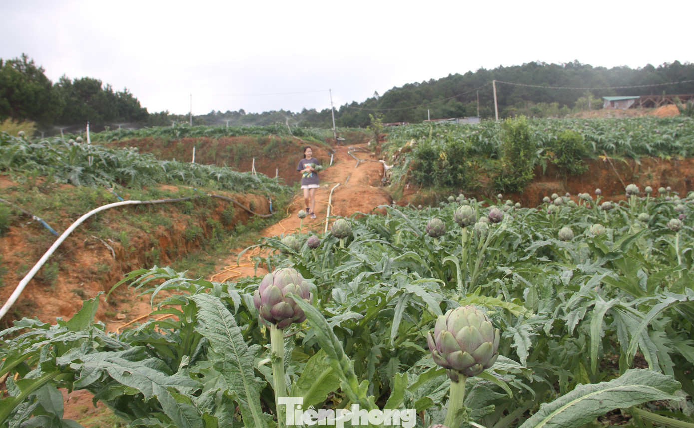 | Atiso được trồng trên vùng đồi núi Đà Lạt nên dân thu hoạch rất gian nan. Ảnh CÔNG HOAN |
