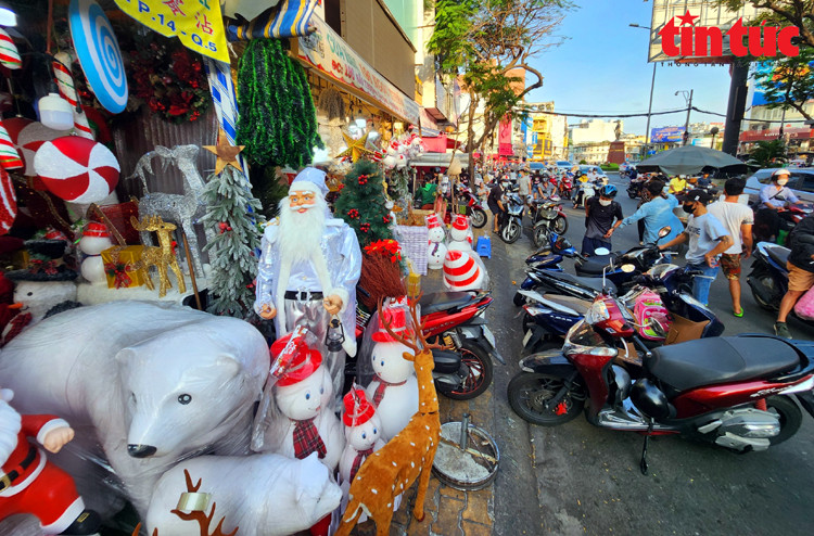Theo ghi nhận của phóng viên Báo Tin tức, những ngày này, tuyến phố Hải Thượng Lãn Ông (Phường 14, Quận 5, TP Hồ Chí Minh) trở nên nhộn nhịp hẳn. Dọc theo phố này, rất nhiều cửa hàng buôn bán mặt hàng trang trí Giáng sinh với đa dạng các món đồ từ cao cấp đến bình dân, từ tí hon đến khổng lồ...
