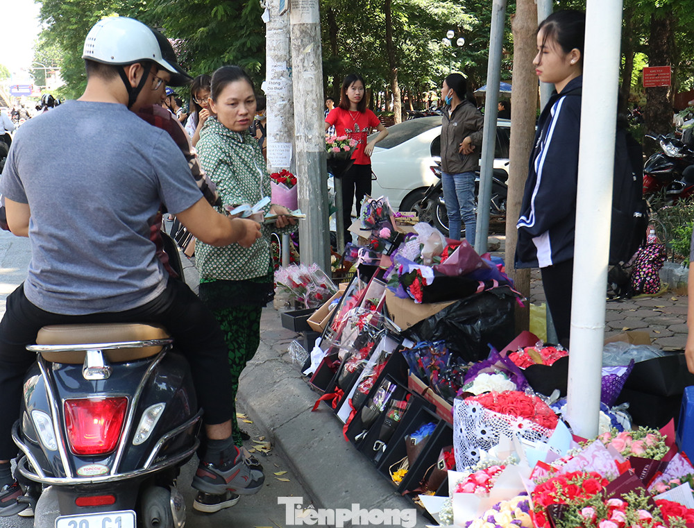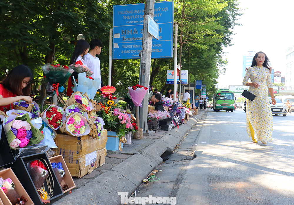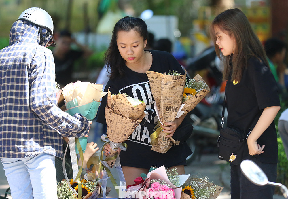 Trước cửa trường Đại học Thuỷ Lợi,nhiều phụ huynh mua hoa để tặng cho cô giáo của con em mình