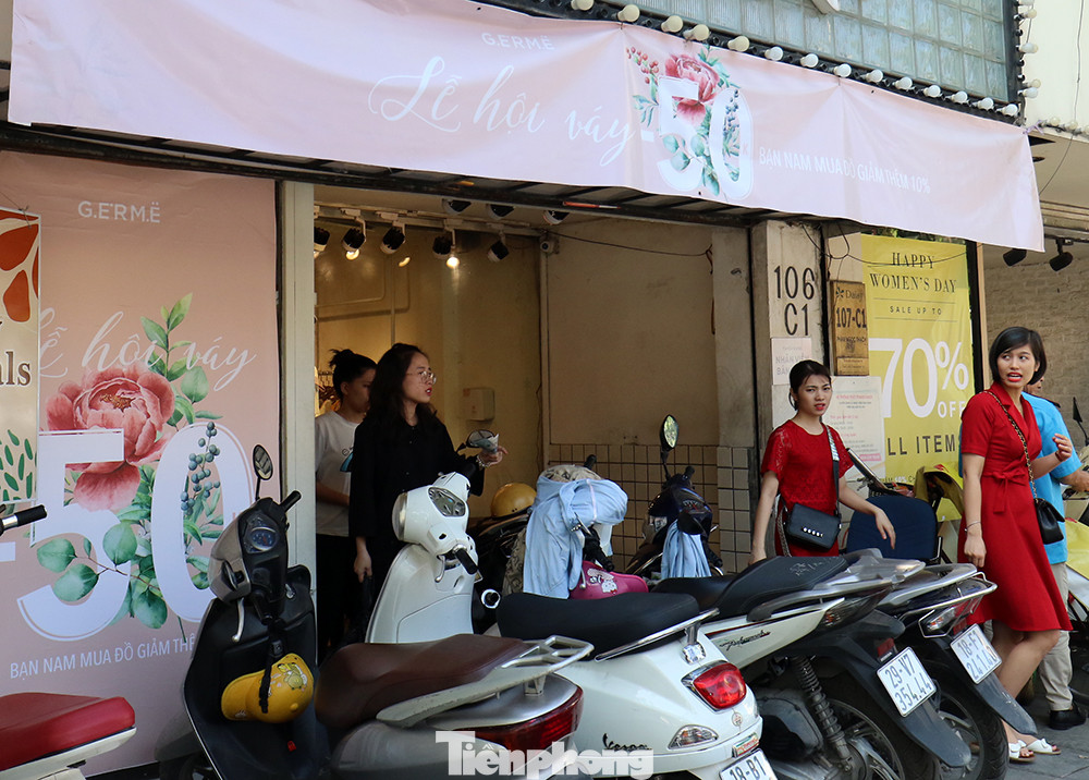 Trên đường Bà Triệu,Phố Huế, Phạm Ngọc Thạch… một loạt các cửa hàng bán quà tặng, quần áo thực hiện giảm giá như mua 1 tặng 1, giảm từ 10 - 50%, giảm giá quần áo tới 70%...
