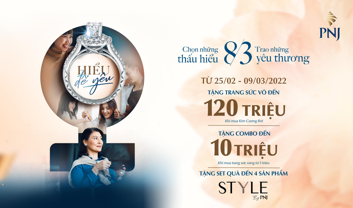 Dịp 8/3 năm nay, bên cạnh việc triển khai các chiến dịch dành tặng cho phái đẹp, Công ty cổ phần Vàng bạc Đá quý Phú Nhuận (PNJ) còn ra mắt thị trường bộ sưu tập Timeless Diamond với 4 kiểu dáng gắn đá chi tiết “đan chéo” tạo cảm giác cứng cáp và bền chặt phù hợp cho thiết kế trang sức Kim Cương như Halo, Solitaire, Bezel, Three-Stone mang thiết kế tinh xảo, đường nét tinh tế, với chất liệu đa dạng, từ vàng trắng, vàng vàng, vàng hồng kết hợp đá sapphire, ruby, ECZ, kim cương, thể hiện vẻ đẹp nội tại của người phụ nữ để “cánh mày râu” có thể chọn lựa, gởi gắm tấm lòng cũng như sự trân trọng dành cho người phụ nữ quan trọng trong đời. Hoặc chính bản thân quý chị em cũng có thể tự thưởng cho mình những món quà riêng.