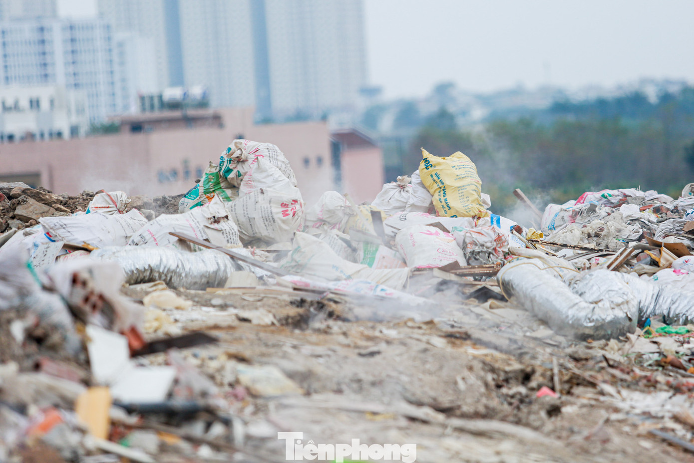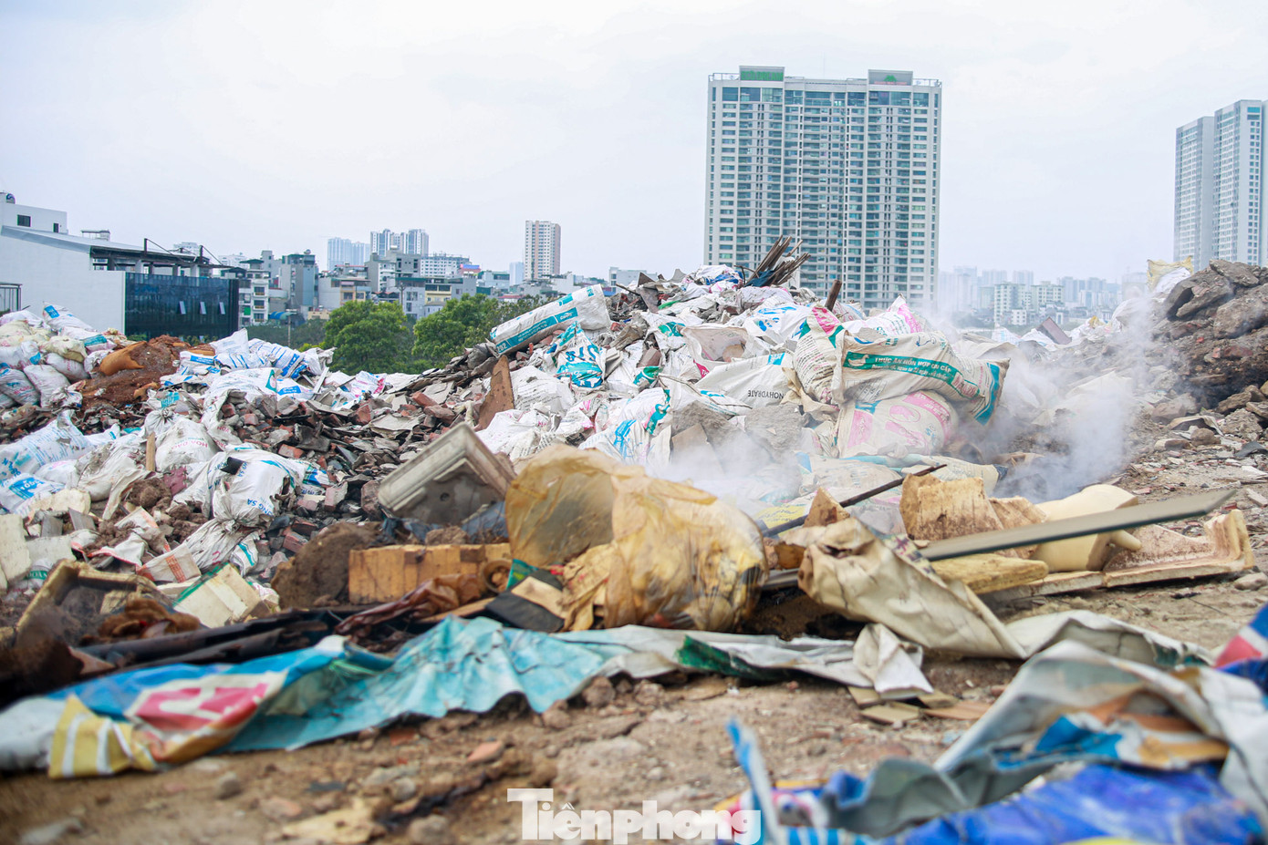Theo ghi nhận của PV, bãi rác tự phát này nằm tại khu vực Nguyễn Xiển - Xa La (phường Đại Kim, quận Hoàng Mai, Hà Nội) rộng hàng trăm mét, được chất cao hơn 10m. Bãi rác chủ yếu là rác thải xây dựng, phế thải từ quá trình phá dỡ, thi công dự án, nhà cửa...