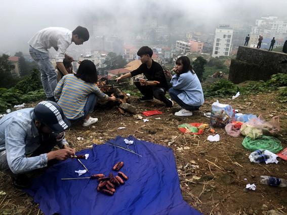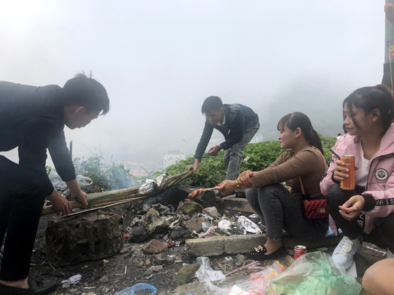 Các "phượt thủ" hạ trại mang thức ăn ra để chế biến ngay trên đỉnh núi Tam Đảo