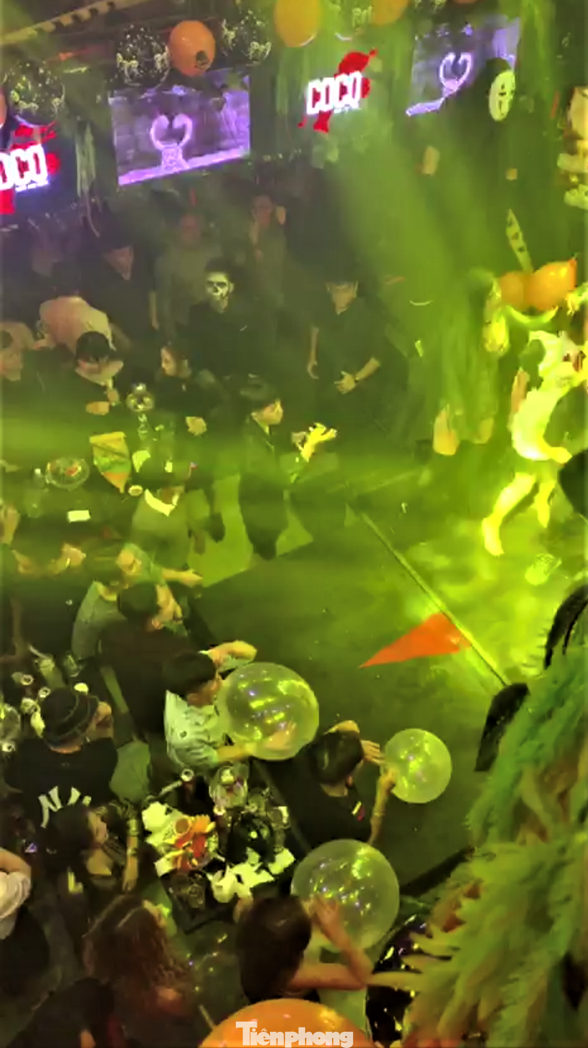 Trong số 220 người được kiểm tra bằng que thử, có 21 người dương tính với ma túy. Công an bắt tại chỗ người đang ngồi bơm khí N20 từ bình lớn đã san chiết ra 2 bình nhỏ, bán bóng cười với giá 140 nghìn đồng/quả.
