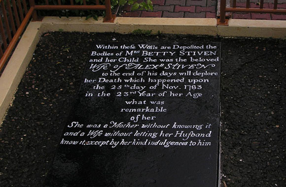 Tại thị trấn Plymouth trên đảo Caribbean, Tobago có một ngôi mộ của một người phụ nữ tên Betty Stiven với những dòng chữ khó hiểu "Trong ngôi mộ này Betty Stiven và các con cô ấy đã yên nghỉ. Cô là vợ của Alex B Stiven cho tới ngày thần Chết mang cô đi vào 25/11/1783, năm cô 23 tuổi. Điều đặc biệt là, cô ấy đã làm mẹ mà không hay biết, làm vợ mà không hay biết ngoại trừ lòng tốt dành cho ông ấy".