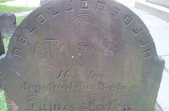 James Leeson qua đời năm 1794 ở tuổi 38. Không ai biết rõ về thân thế của ông nhưng bia mộ của ông rất đặc biệt với một chiếc đồng hồ cát có cánh biểu tượng cho sự trôi chảy của thời gian, một chiếc bình đang cháy tượng trưng cho sự bất tử của linh hồn và một dụng cụ cắt đá ám chỉ ông là một thợ xây. Thêm vào đó, có một dòng mật mã bao quanh phiến đá và không ai giải được nó cho đến năm 1889 với ý nghĩa "Ghi nhớ cái chết". Ông đã thành công khi thách thức người dân Mỹ trong gần một thế kỷ với lời nhắn hãy trân trọng cuộc sống vì chúng ta chỉ có thể sống một lần.